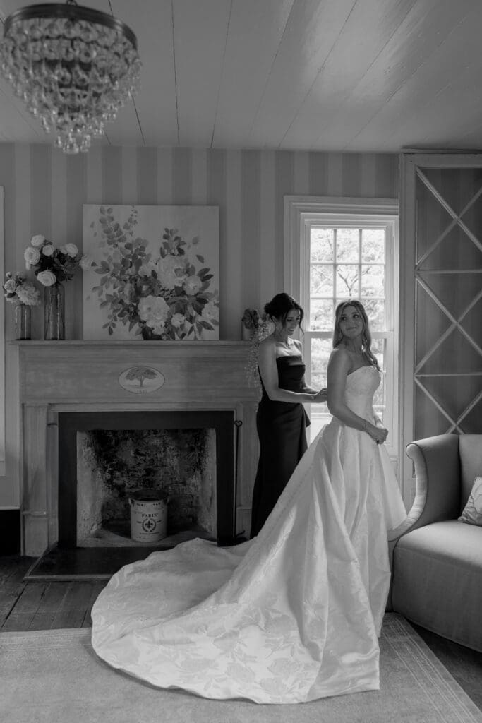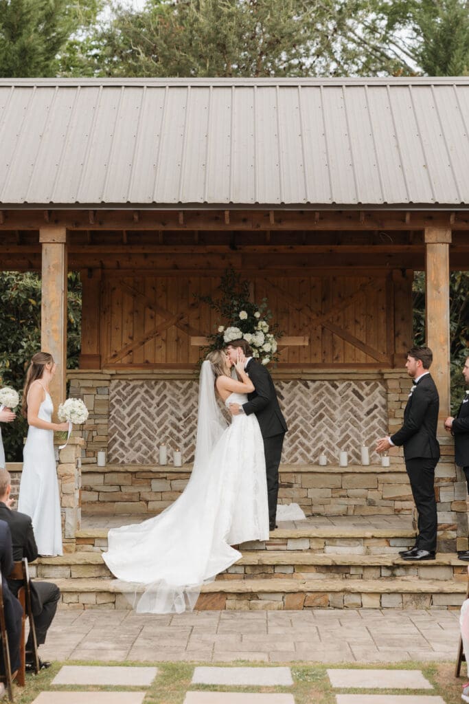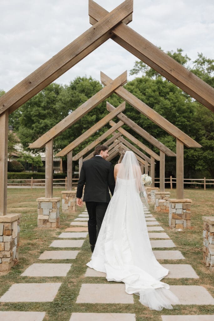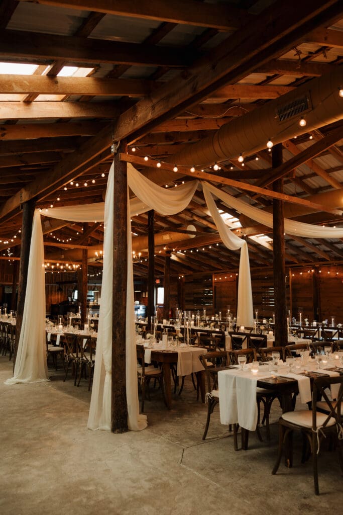 Vinewood Stables provided the perfect backdrop for their wedding. The venue’s blend of rustic charm and elegant details created a warm, inviting atmosphere that matched Kara and Hunter’s style beautifully. Soft natural light filtered through the space during getting ready, and the ceremony setup felt intimate yet timeless.